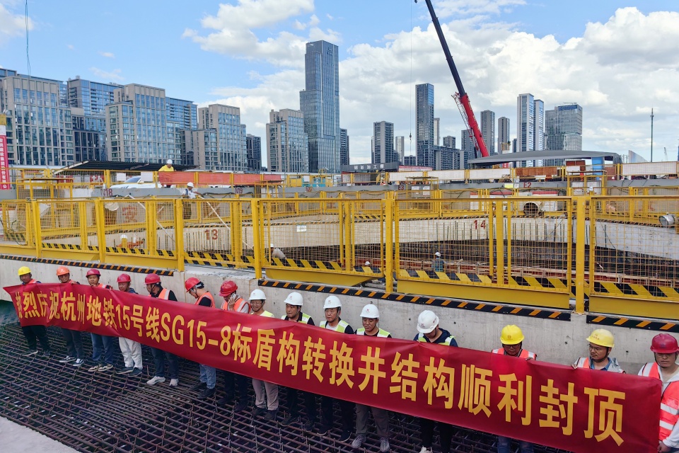 近日,宏润杭州市城市轨道交通15号线一期施工SG15-8标段顺利完成盾构转换井结构封顶,正式进入区间隧道施工冲刺阶段。