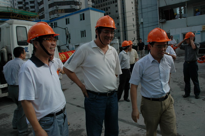 象山县委领导慰问公司承建的王宝和大酒店工地(2006年8月5日)
