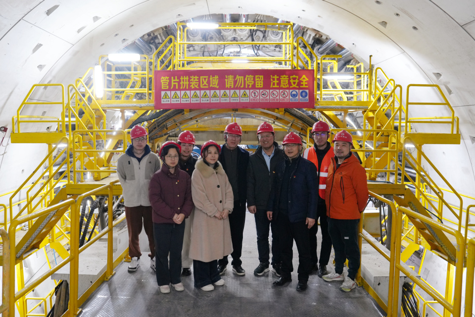 档案馆党员同志深入施工一线,实地查看工程建设。在盾构指挥中心,通过监控屏幕与现场讲解,详细了解超深基坑、盾构掘进等重难点环节攻坚实况,从档案中静默的图纸到眼前有序推进的施工现场,对这条联通重要区域线路的意义有了更直观体会。
